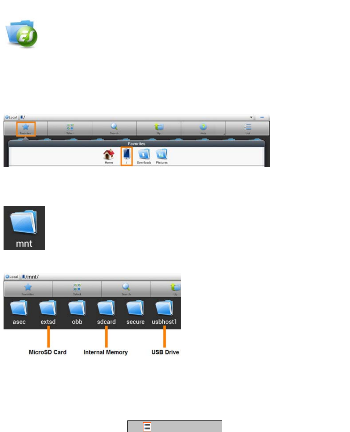 (Priljubljene) za hitrejši dostop do vaše kartice MicroSD in USB-ključa.