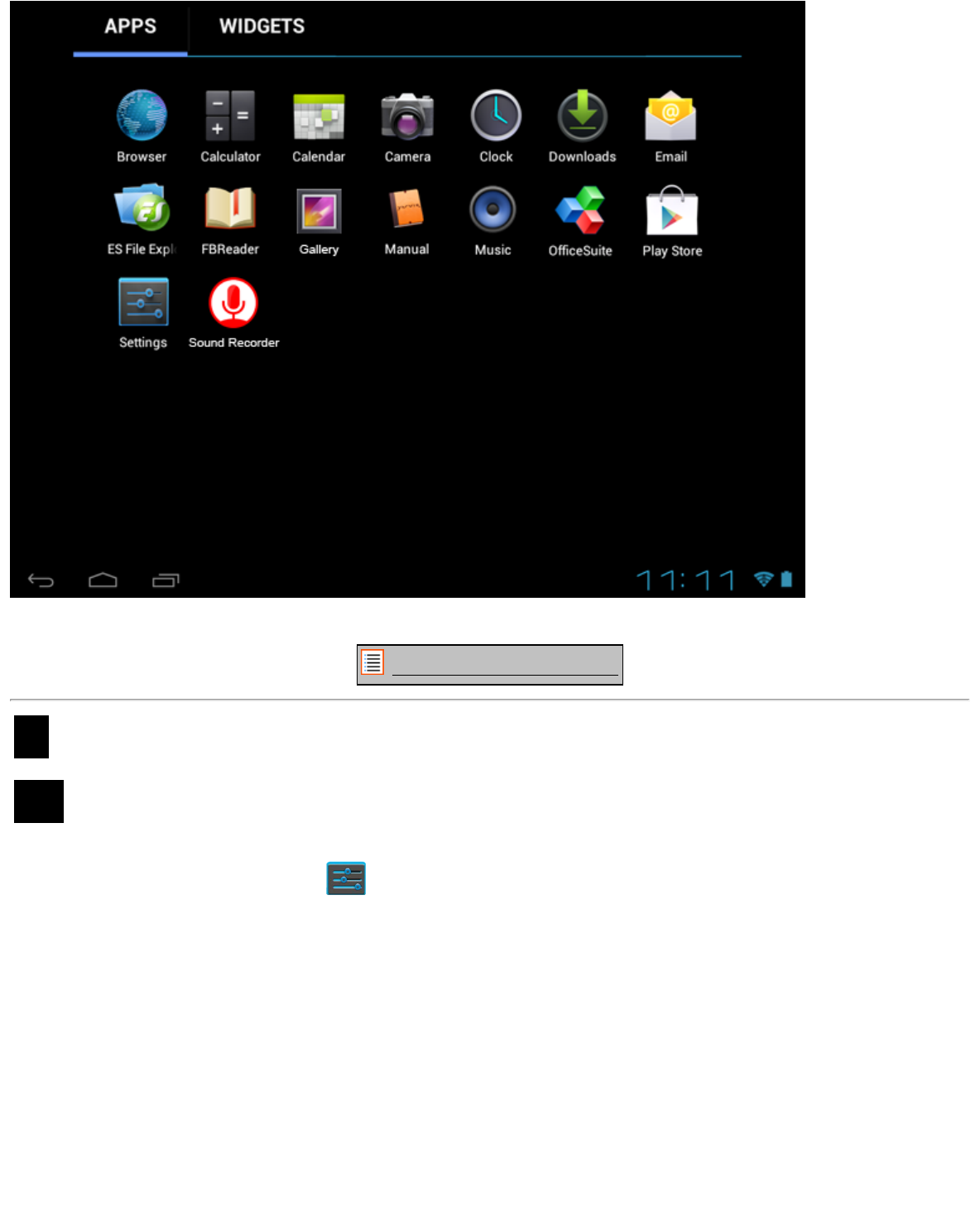 Prima o ícone Settings (Definições) no Menu de aplicações para entrar no Menu de definições. No