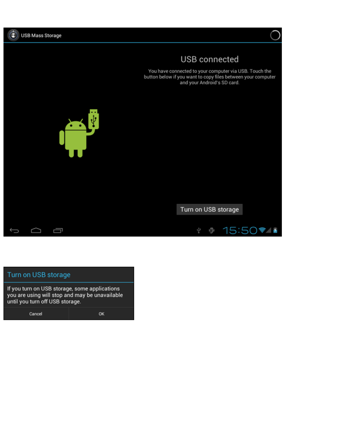 Kad se pojavi druga poruka "USB connected" („USB spojen“) kliknite na nju.