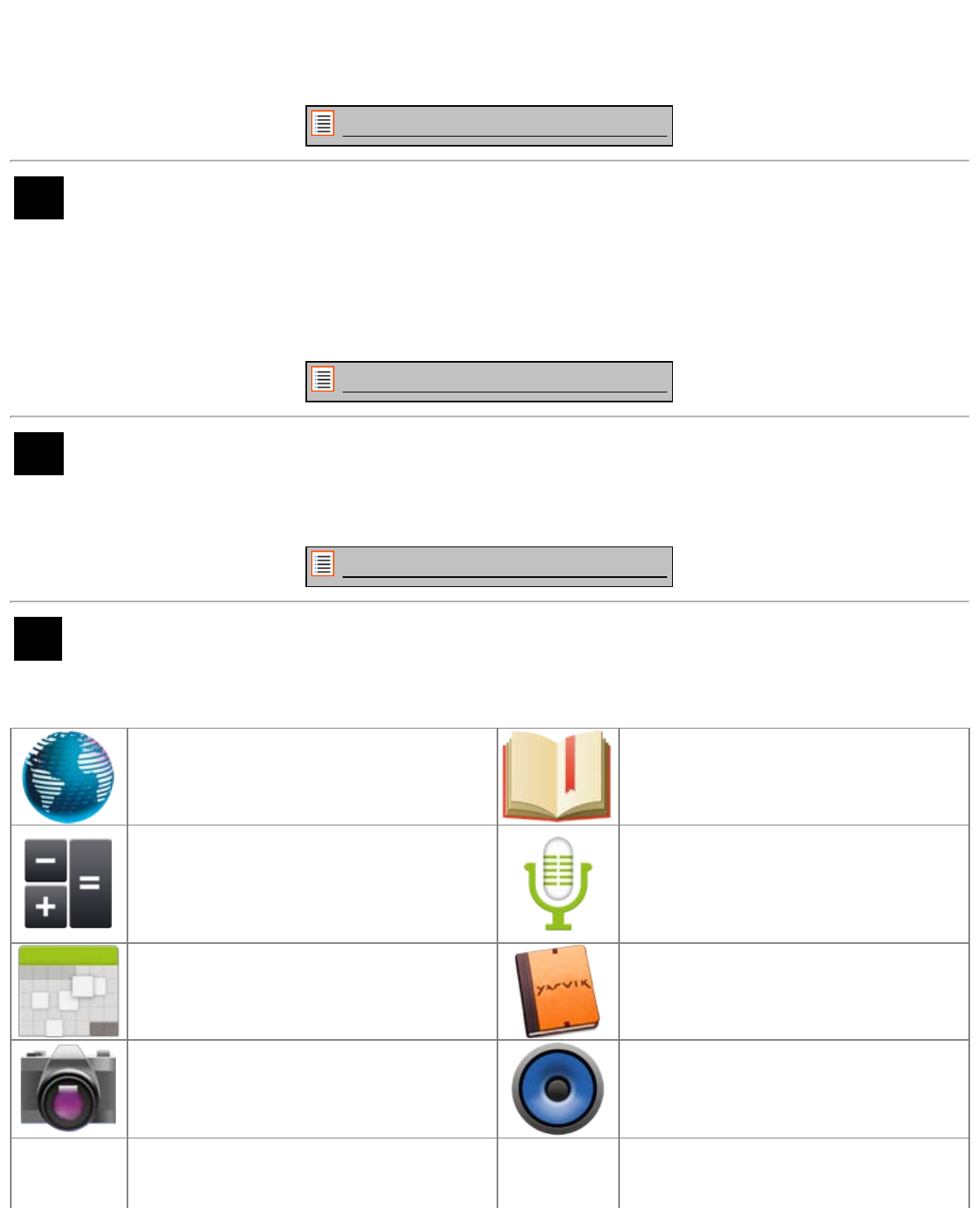 Tablet Yarvik GoTab jest dostarczany z fabrycznie zainstalowanymi aplikacjami (patrz przykłady poniżej).