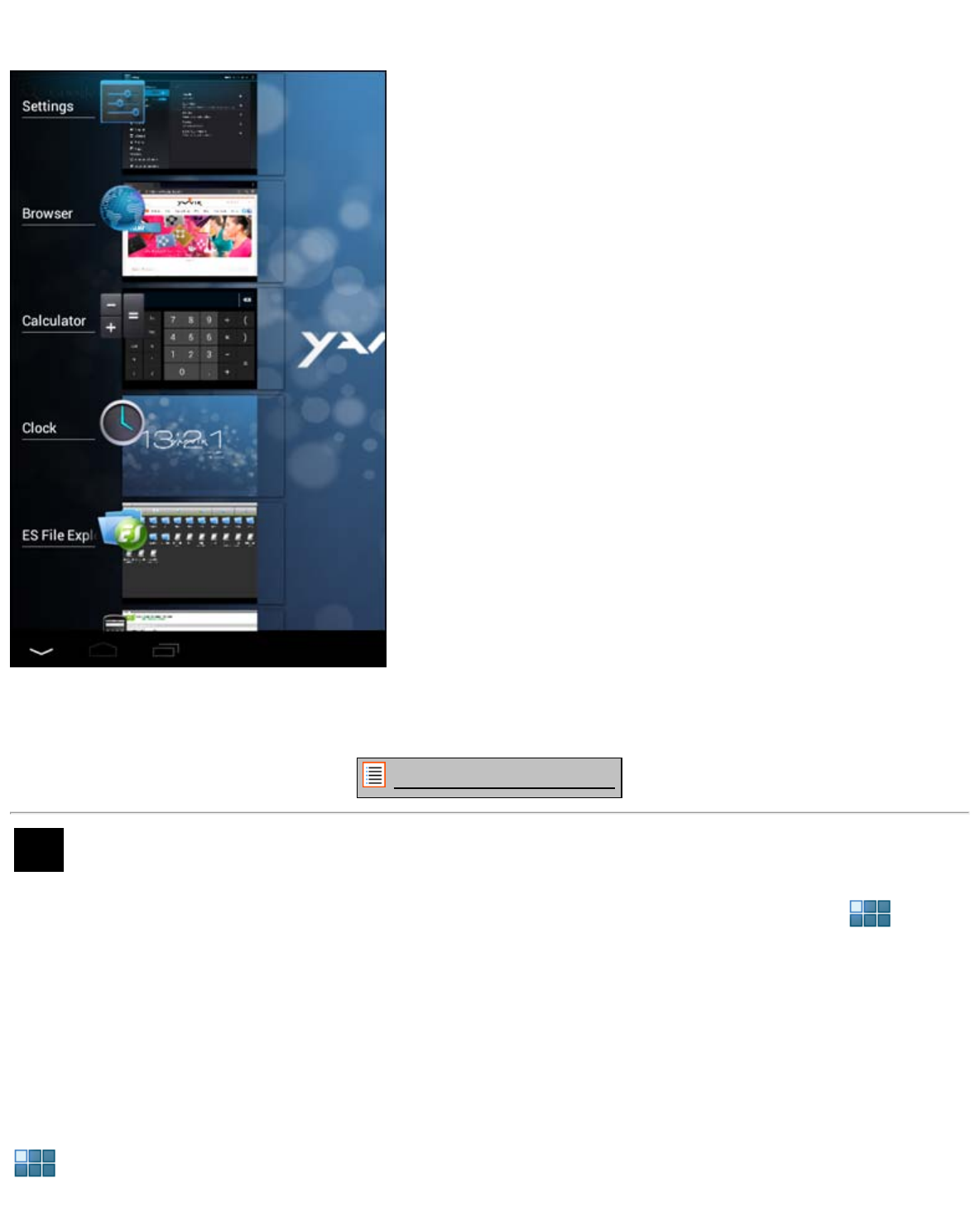 Click on a running app in the multitask view to quickly switch to it. You can close running apps by long