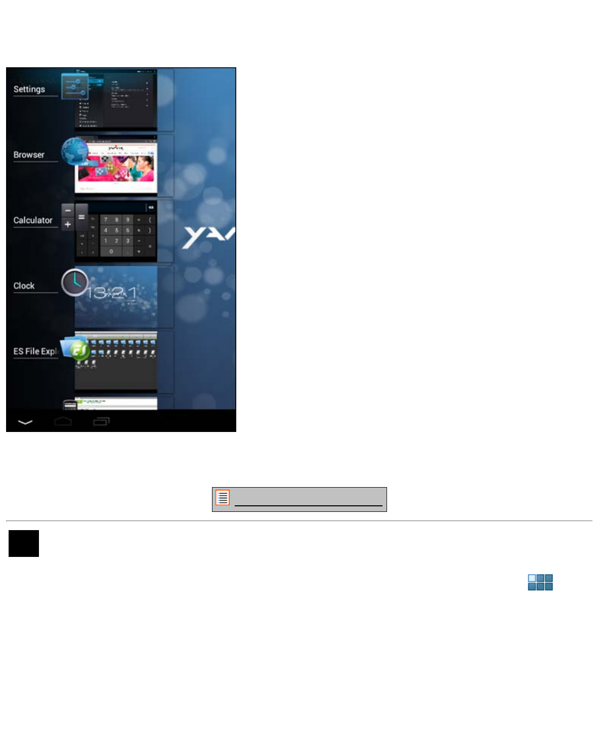 Om te bekijken welke apps op de achtergrond worden uitgevoerd, kunt u met de multitask-knop (6) de