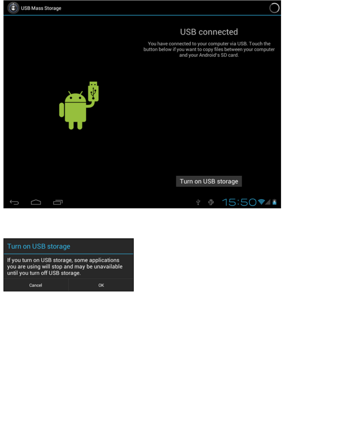 Om de functie van apparaat voor massaopslag te stoppen, klikt u op de knop "Turn off USB storage" (USB-