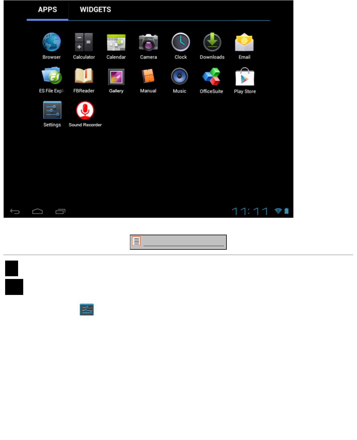 Press the Settings icon in the Application Menu to enter the Settings menu. In the Settings menu you
