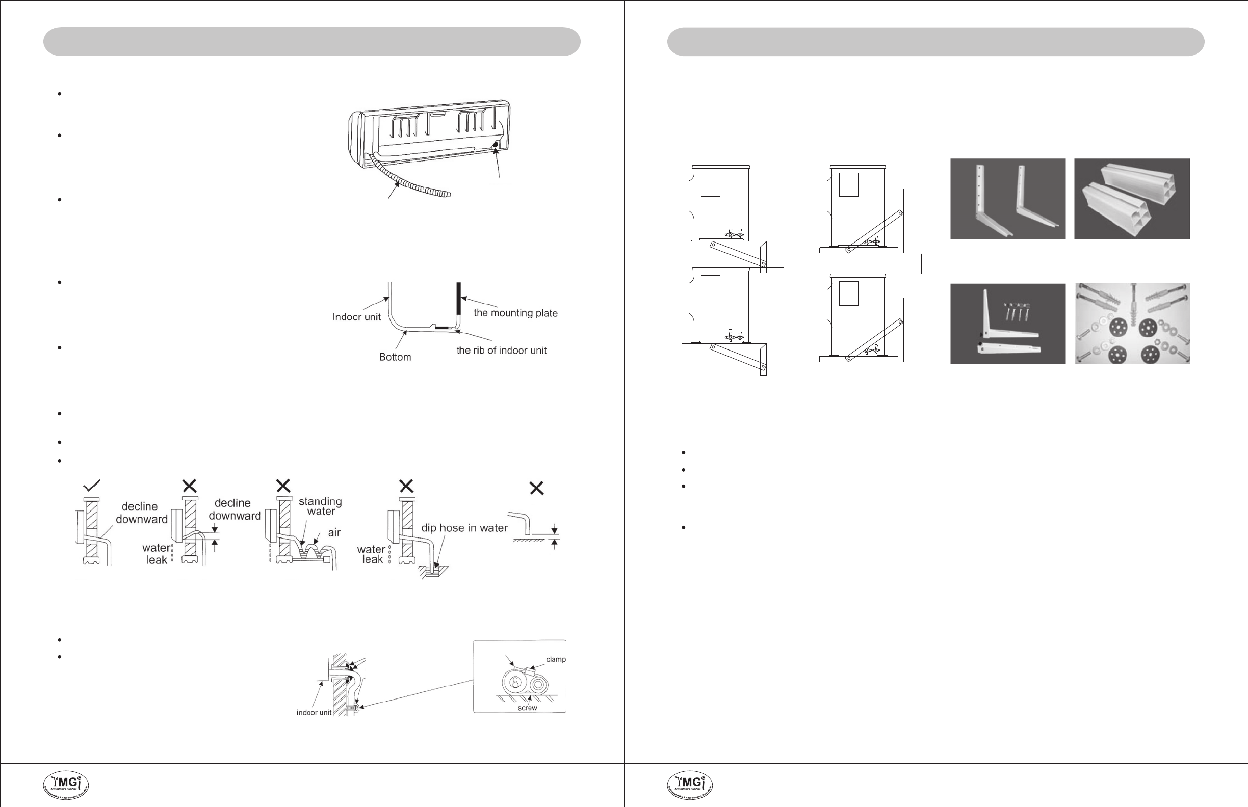 Suggest to use YMGI-provided brackets and condensate drainage fitting accessories.