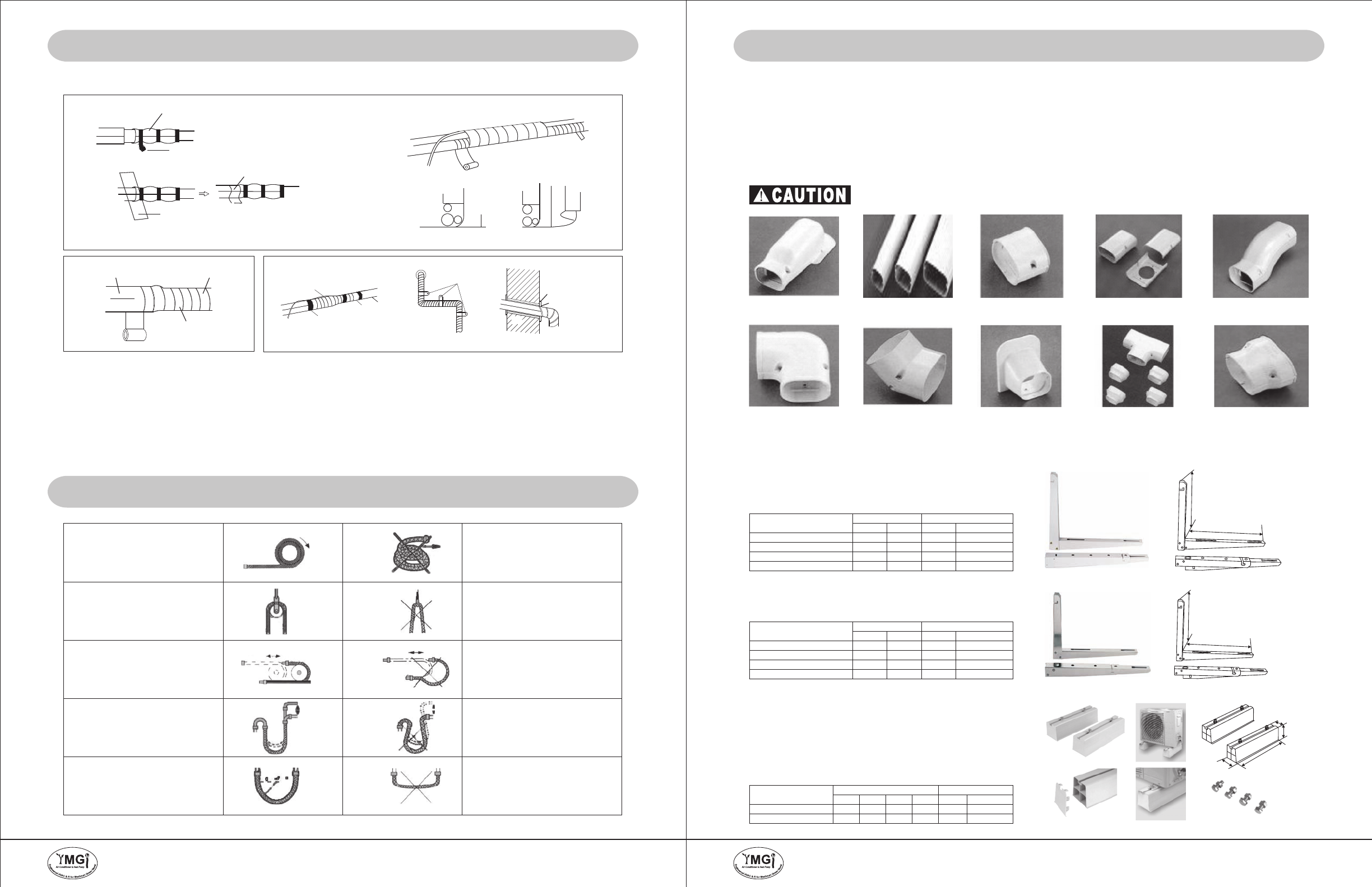 * Run cables along with the refrigerating copper line sets and secure them with tapes at 6 feet apart.
