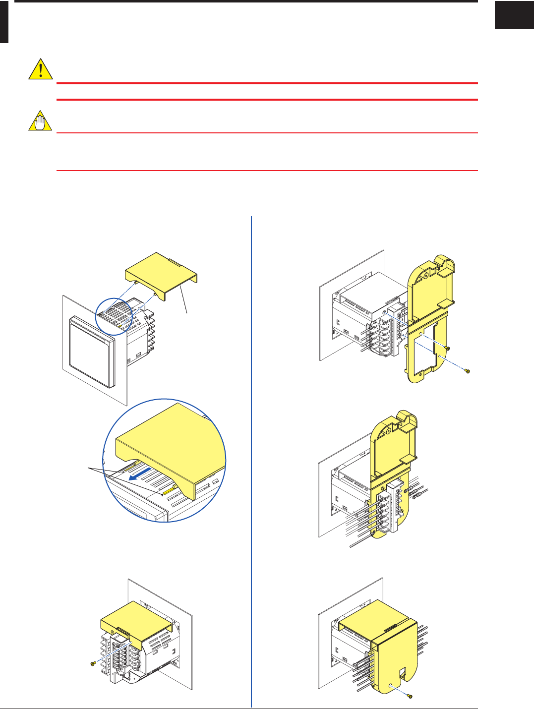 As there is a danger of electric shock, do not attach the dust cover and terminal cover while the wires are live.