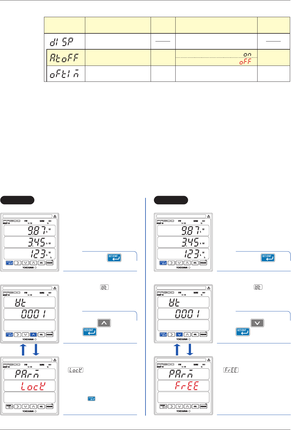 unlocked individually.) If a parameter is locked, it will be impossible to shift to the Parameter Setting screen.