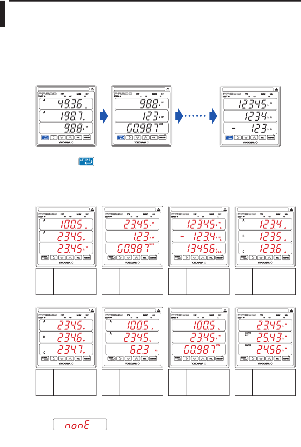 As below, “NONE” appears in the display of a measurement item whose value cannot be displayed due