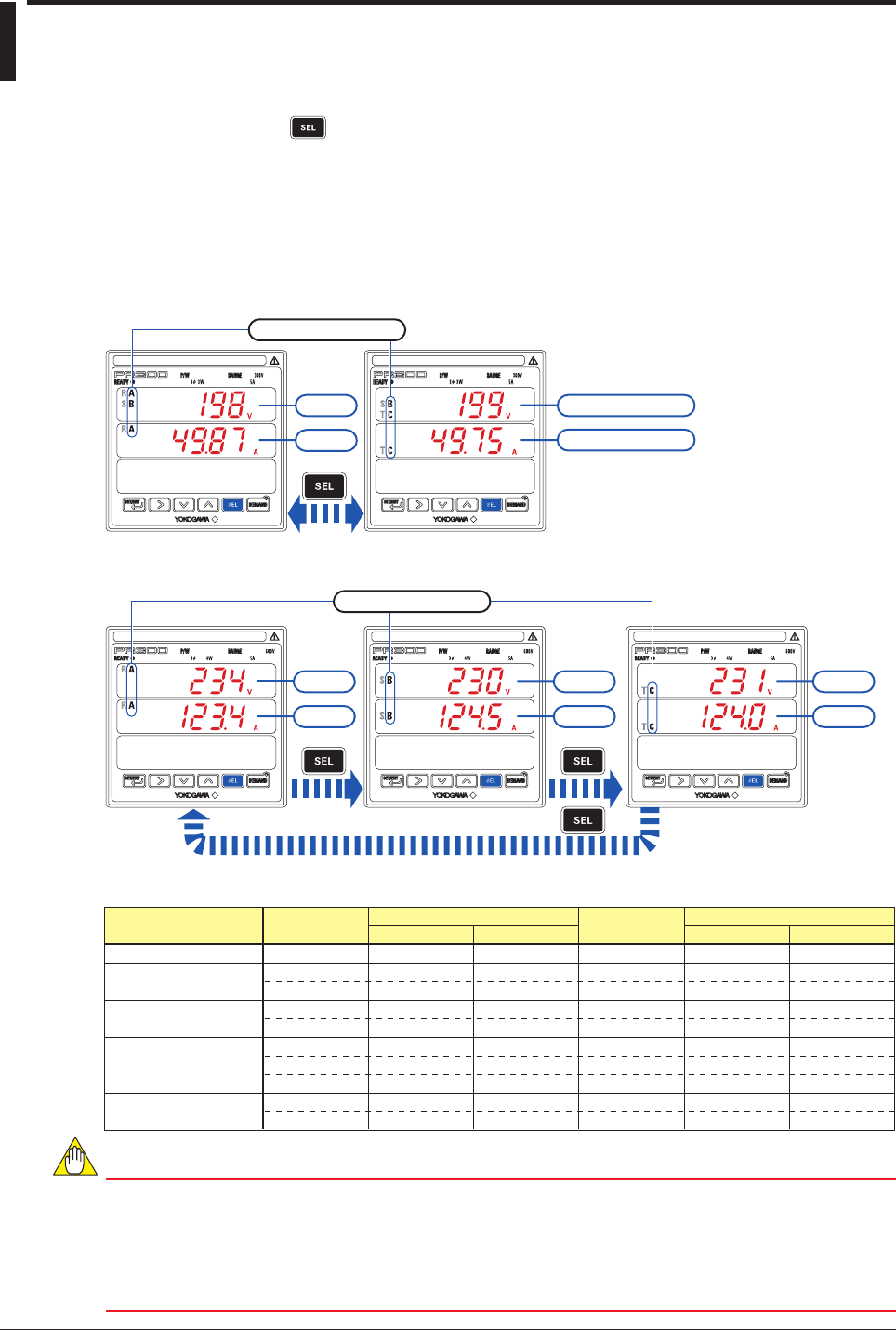 Using an operation key ( ) of the PR300, the user can switch the phase of voltage, current, and