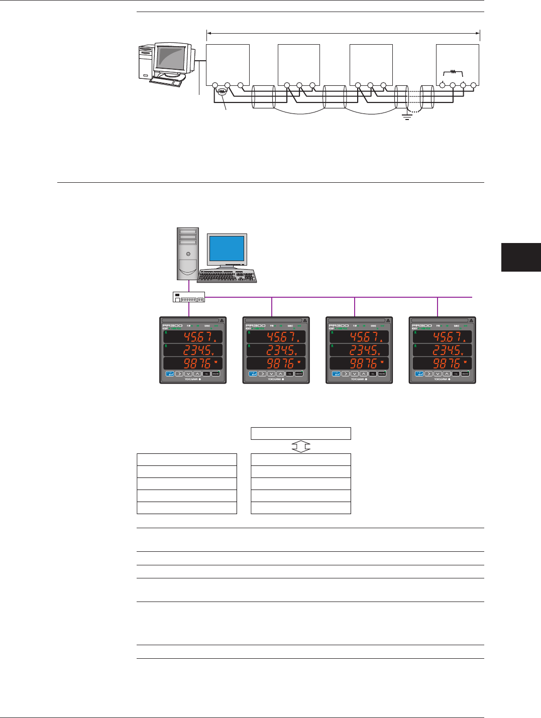 FG: For noise protection, a shield line must be connected to all wires in the RS-485 communication line and grounded