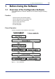 <1. Before Using the Software> 1. Before Using the Software 1.1 Overview of the Configuration Software The POWERCERT PC Parameter Setting Tool is the software having the following functions. Function • Send and receive the parameter settings. • Set the display pattern (for the PR300 only). • Set and reset the energy value online. • Save the setup data to a file. • Edit the setup data. • Print the setup data. Flow of Operation The flow of operation of the software is shown below. Figure1.