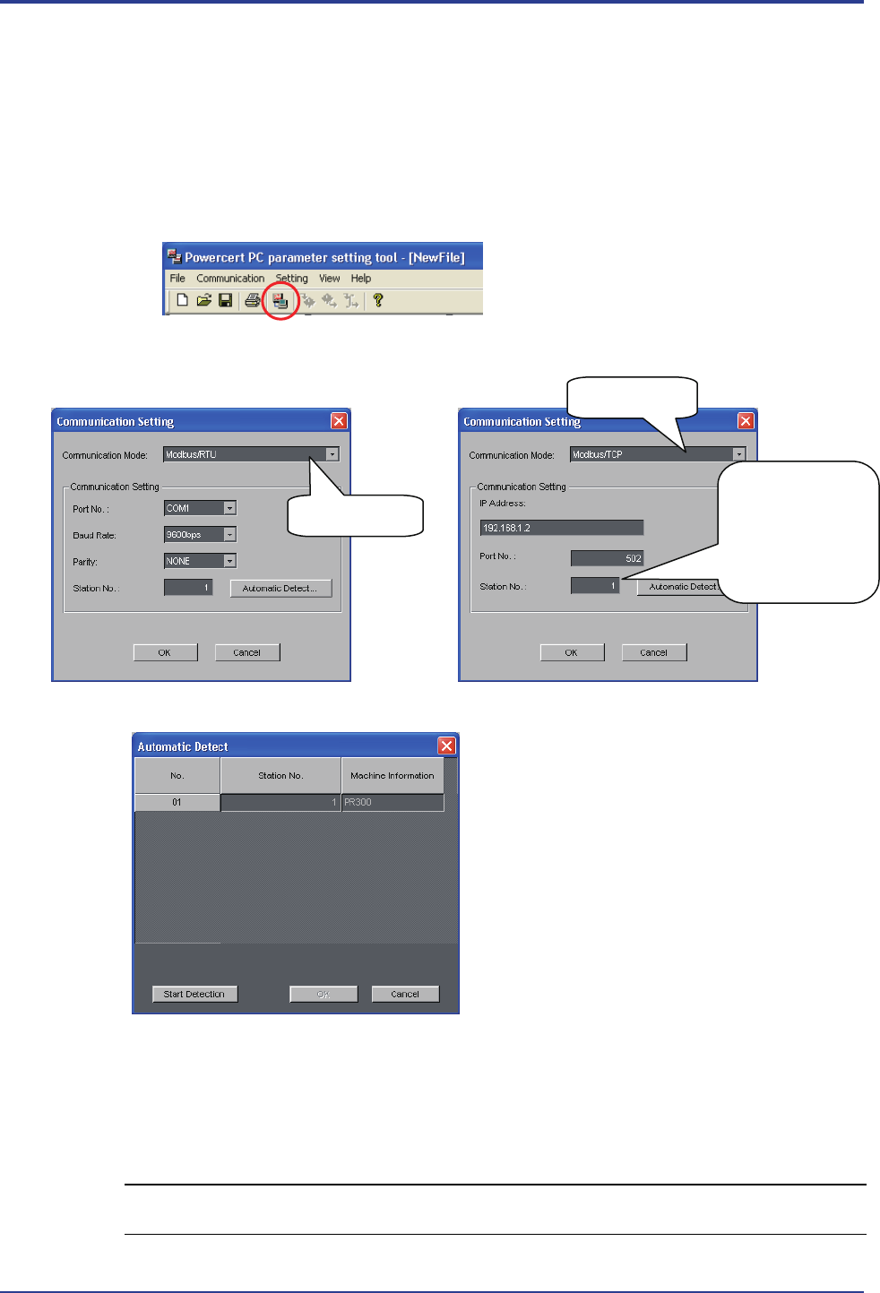 click the Communication Setting icon on the toolbar. The Communication Setting