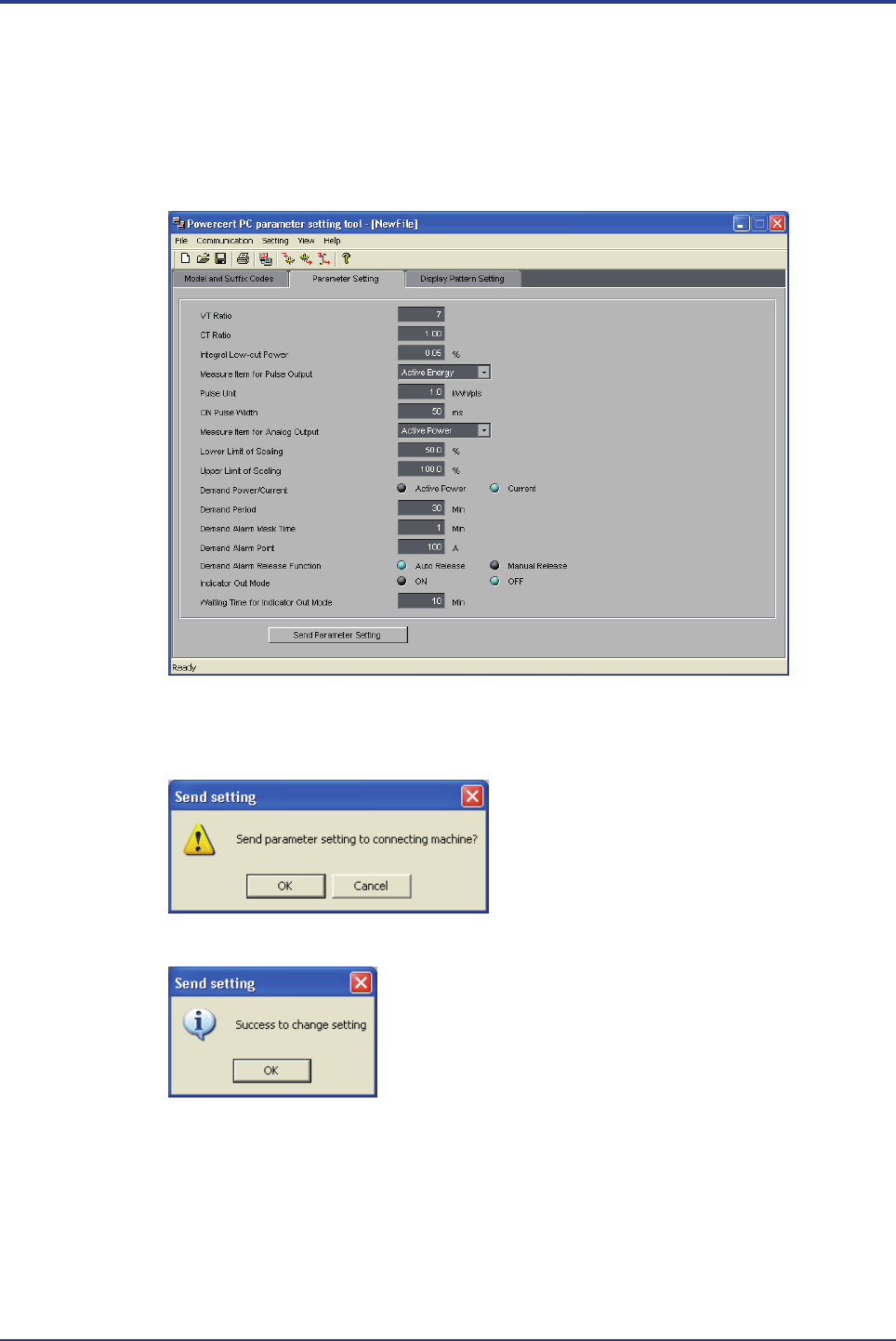 A confirmation dialog box for sending the setting opens. (The figure below shows