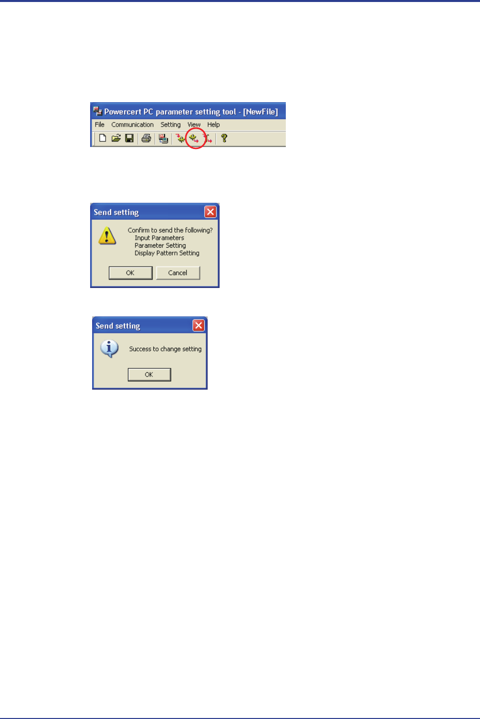 Send Setting icon on the toolbar. A confirmation dialog box for sending the setting