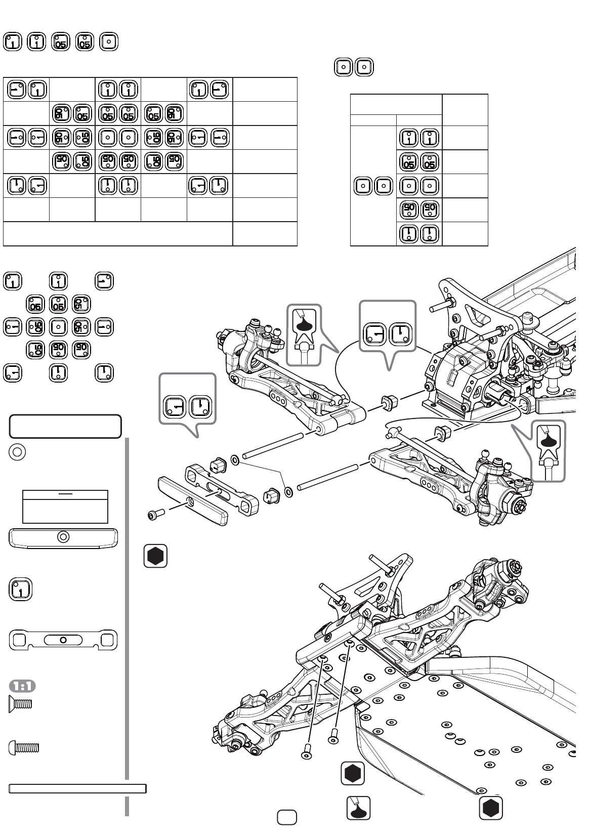 5 種のブッシュの組み合わせにより、スキッド角、トレッド、ハイトの調整が行えます。