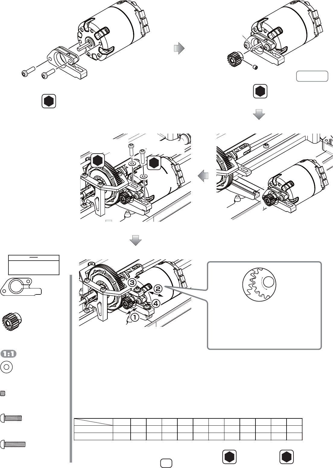☆ピニオンギヤは 17T ∼ 30T まで装着できます。