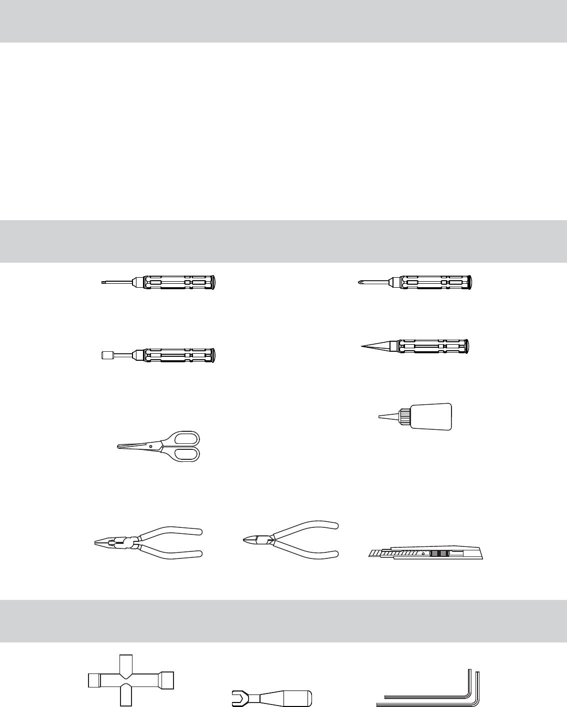 ACCESSORIES AND TOOLS NEEDED FOR KIT ASSEMBLY