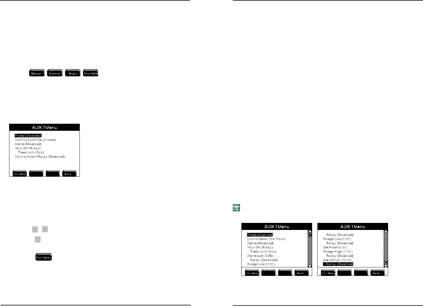 See Control Mode and Alarms - page 138 before conguring the Aux systems.