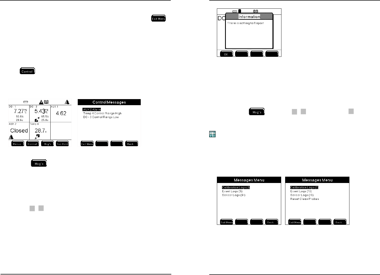 A Reset Clean Probe message will appear at the Msg’s Menu if the clean probe timer