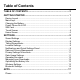 Table of Contents TABLE OF CONTENTS ................................................................... 2 GETTING STARTED ........................................................................ 1 Device Layout ........................................................................................... 1 Main Keys ................................................................................................. 2 Charging the Battery ............................................................................