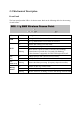 2-3 Mechanical Description Front Panel The front panel provides LED’s for device status. Refer to the following table for the meaning of each feature. LED PWR STATUS Description Off 802.11g SMB Wireless Access Point is off. On 802.11g SMB Wireless Access Point is in service. Off Indicates that leaving boot-code mode. On Indicates that entering boot-code mode. TEST LAN Off 1.Reset button is pressed around 3 seconds (slow blinking). 2. Reset button is pressed after 3 seconds (fast blinking). 3.