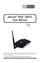 zBoost® TRIO ZB575 User Manual Models: • ZB575A • ZB575V zBoost® products have a 30-day money back guarantee when purchased directly from zBoost. If product is purchased from a reseller or third party, the purchaser is subject to the policies of the third party. 1 year manufacturer warranty. Warranty registration at www.zBoost.com v.