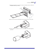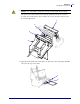10. Remove the hook from the rewind spindle. Store the hook in the bottom of the printer.