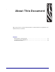 About This Document This section provides you with contact information, document structure and organization, and additional reference documents. Contents Who Should Use This Document . . . . . . . . . . . . . . . . . . . . . . . . . . . . . . . . . . . . . . . . . . . 10 How This Document Is Organized . . . . . . . . . . . . . . . . . . . . . . . . . . . . . . . . . . . . . . . . . . 10 Document Conventions . . . . . . . . . . . . . . . . . . . . . . . . . . . . . . . . . . . . . . . . . . . . . . . . . .