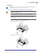 7. To reinstall the snap plate, insert the snap plate into the printer until it hits the stops (1) on