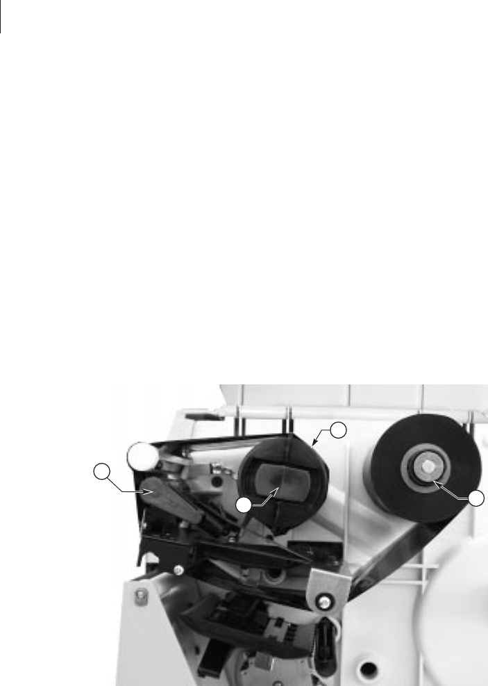 ribbon from the takeup spindle, press the release button (d) and slide the