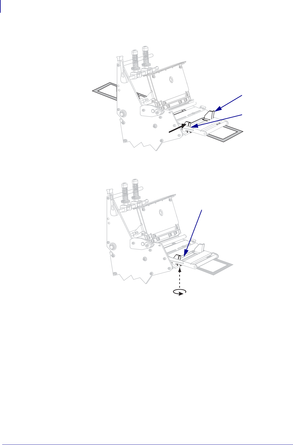 8. Align the media with the inner media guide (1). Slide in the outer media guide (2) until it