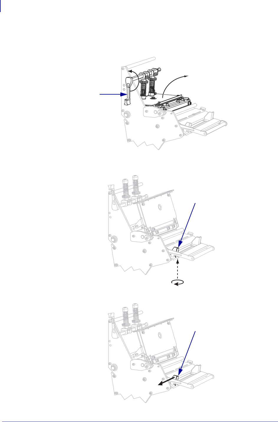 8. Open the printhead assembly by rotating the printhead-open lever (1) counter-clockwise.