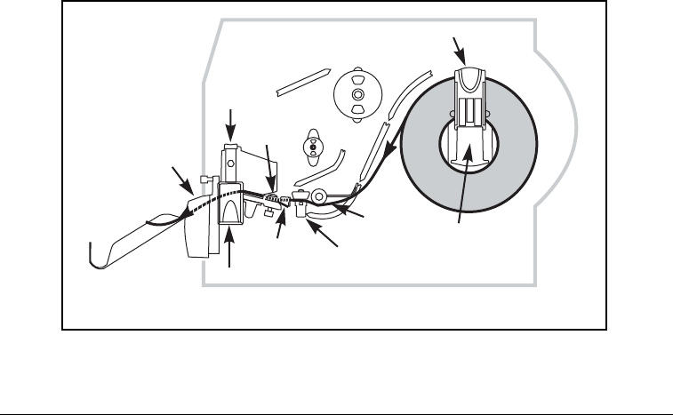 7. Feed the media under the dancer, through the slot in the transmissive sensor, under