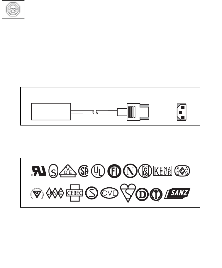 • The AC power plug and IEC 320 connector must bear the certification mark of at