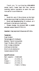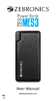 Thank you for purchasing ZEBEDEE power bank. Please read this user manual carefully before operation & save this user manual for future reference. Note: + Avoid the use of this product at the high temperature and high humidity environment, + Avoid self-disassembling of product, as it will resulting the failure of warranty, + Please charge the product with a power adapter output rated DC Caution: May explode if disposed off in fire.
