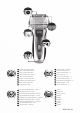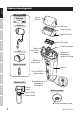 Polski Elements and accessories Accessories Cap Brush Česky AC adaptor Outer foil Slovenčina Center trimmer Outer foil unit Magyar Inner blade Travel pouch Vibrator Outer foil frame Română Outer foil unit release button Hair pocket Русский Blade oil Body case ON/OFF button Български Battery level indicator Rear side Українська Shaving head Trimming blade Bottom view English Trimming blade button Socket 104 SH2010-005_v01