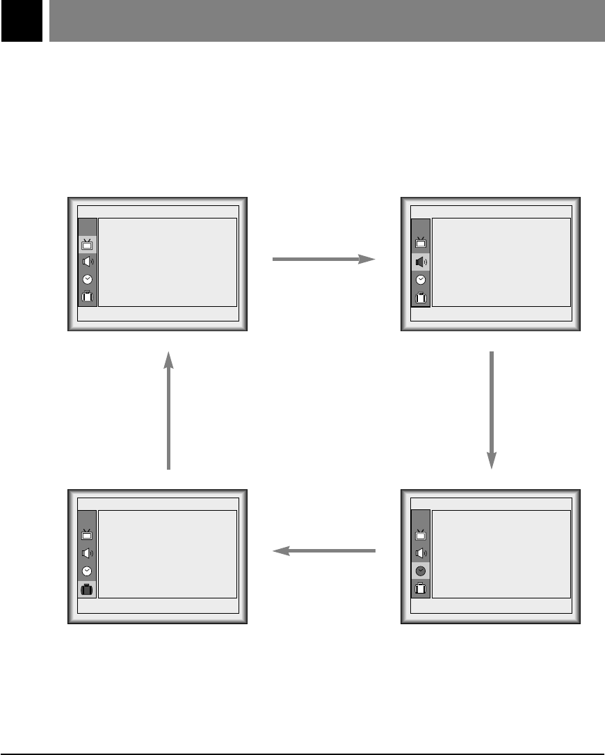 Press the menu button repeatedly to display the menus as shown below.