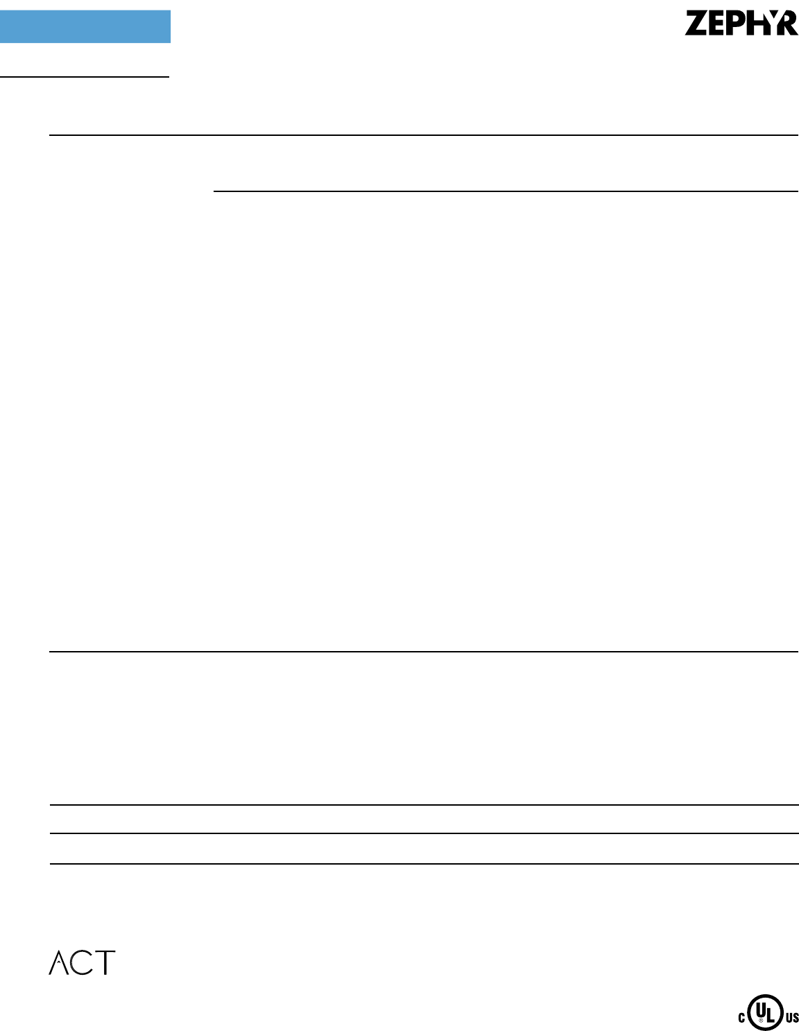 Specications subject to change, check zephyronline.com for up-to-date information.