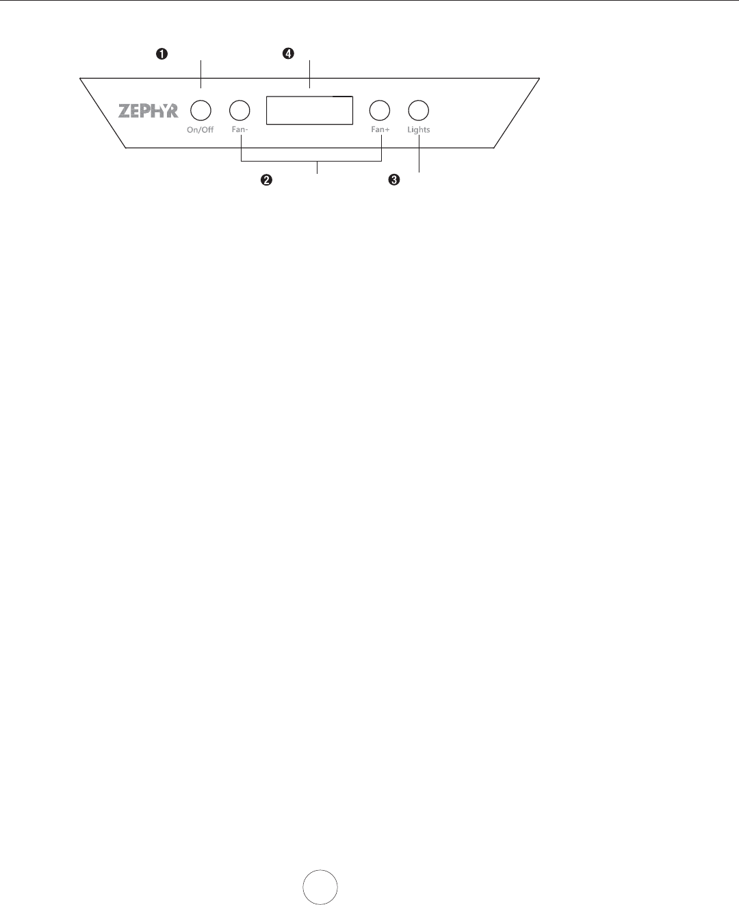 The 6 speed levels are selected by pressing Fan - to decrease and Fan + to increase speed levels. The Display indicates the