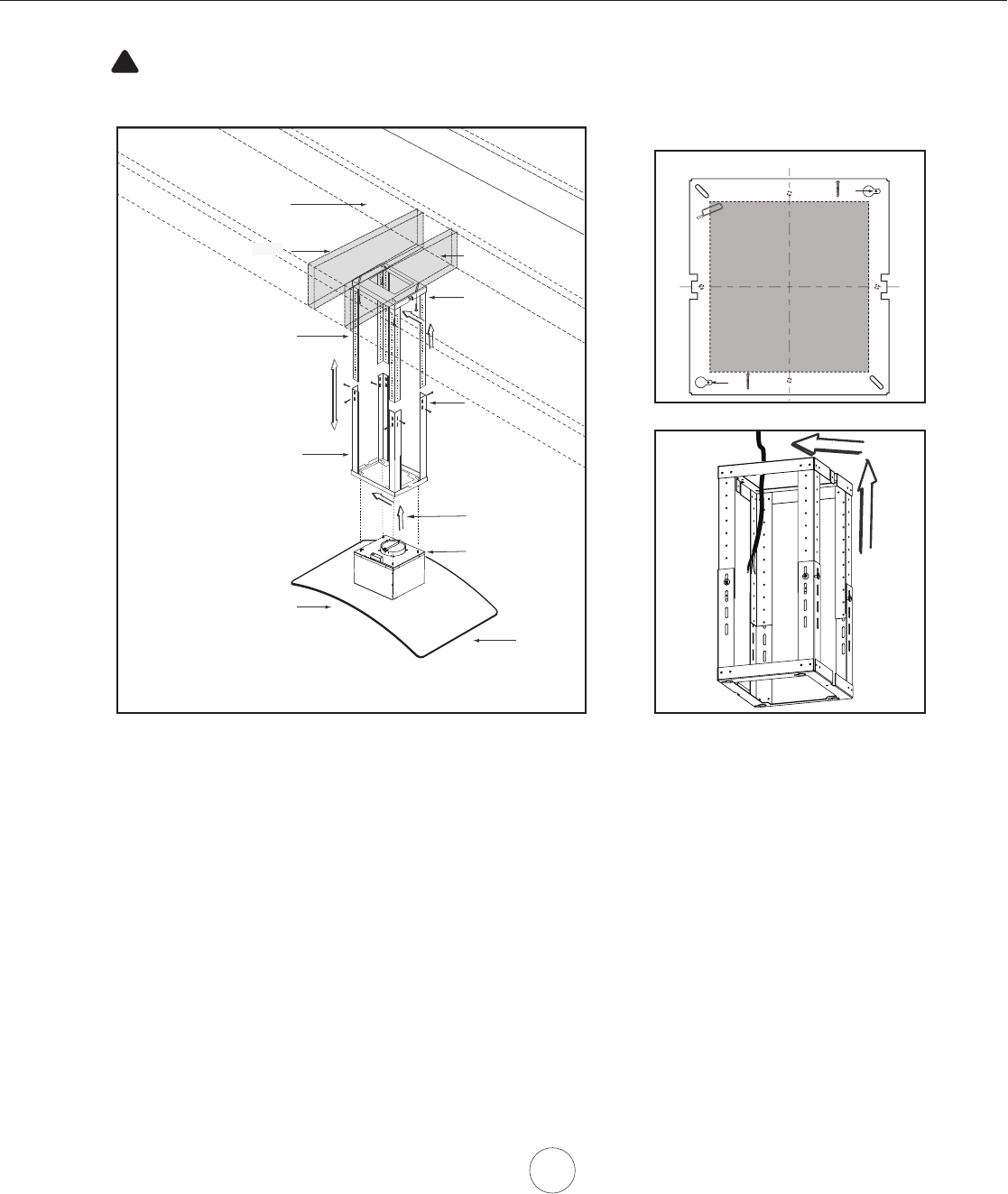 hood) to the ceiling. Cut-out internal shaded area of template to allow the ductng and electrical to pass through