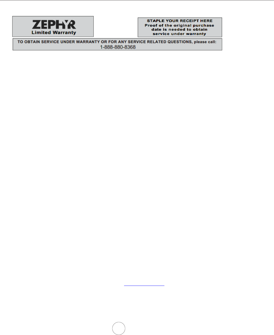 Zephyr Ventilation, LLC (referred to herein as “we” or “us”) warrants to the original consumer purchaser (referred to herein