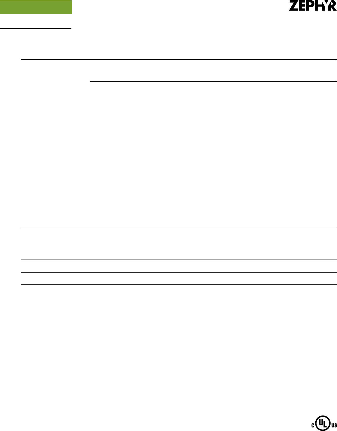 Specications subject to change, check zephyronline.com for up-to-date information.