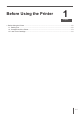 Before Using the Printer 1 Chapter 1. Before Using the Printer ..................................................................................................................1-2 1.1. Packing List ..............................................................................................................................1-2 1.2. Components of the Printer ........................................................................................................1-3 1.3. Laser Toner Cartridge ..............