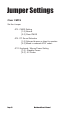 Jumper Settings Clear CMOS Set the Jumper JP2 : CMOS Setting [1-2] Normal [2-3] Clear CMOS JP9 : PC Sound Selection [1-2] Onboard buzzer or direct to speaker [2-3] Mixed in onboard AC97 codec JP11: Keyboard / Mouse Power Setting [1-2] : Standby Power [2-3] : 5V Power Page 10 Mainboard User's Manual