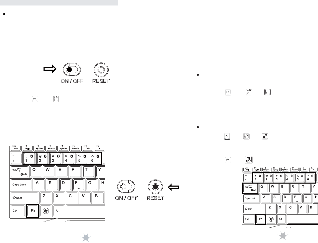 1. Press “ ” + “ ”~ “ ” on the Bluetooth keybord, and
