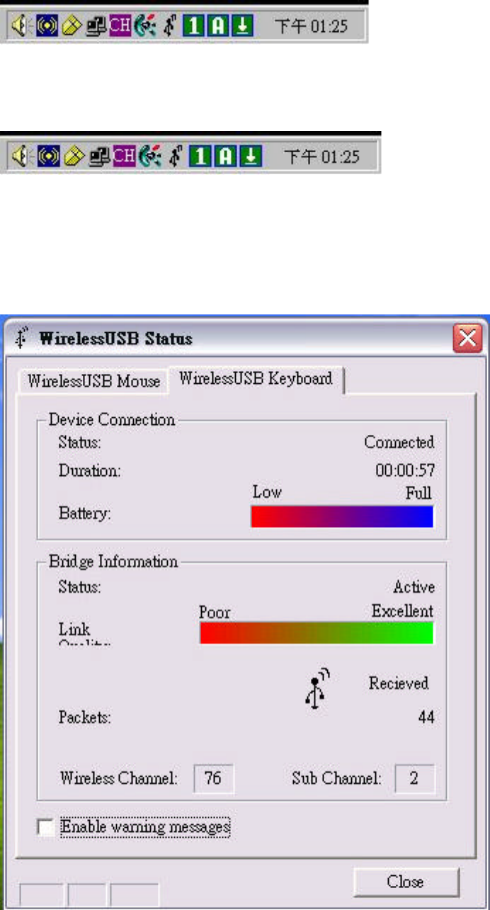 After install WirelessUSB Status software, you can check the battery status and Wireless