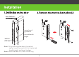 Installation 1. Drill holes on the door 2. Remove the mortise latch plate (J) door thickness 35~45 mm center line of the handle K desired handle height H backset 62.5 mm J Note 1: Align the template along the vertical center line of the mortise (H) at the desired handle height, and tape it to door. Note 2: Mark the holes first, then start drilling.