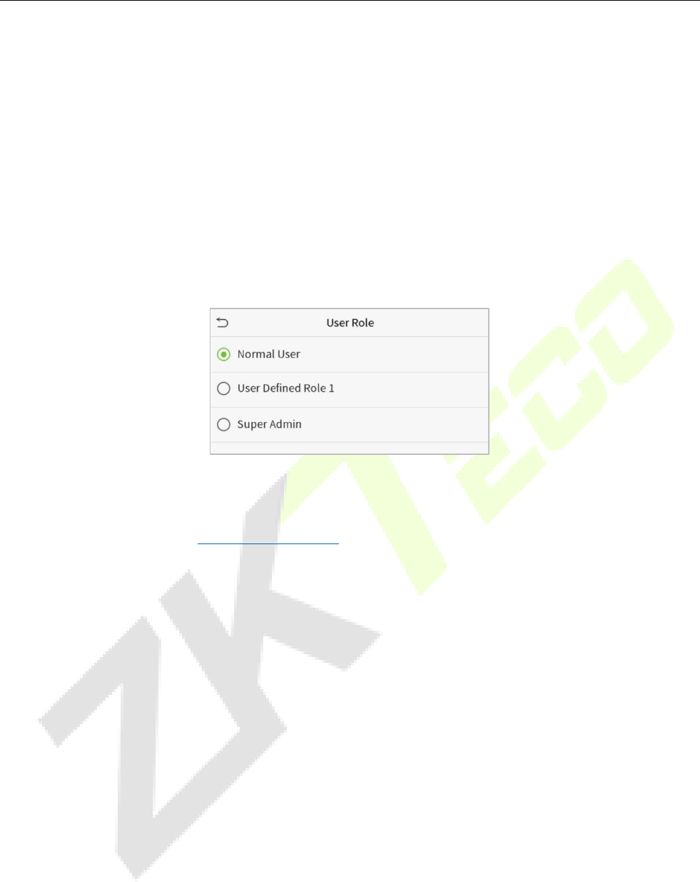• Normal User: If the Super Admin is already registered in the Device, then the Normal Users will