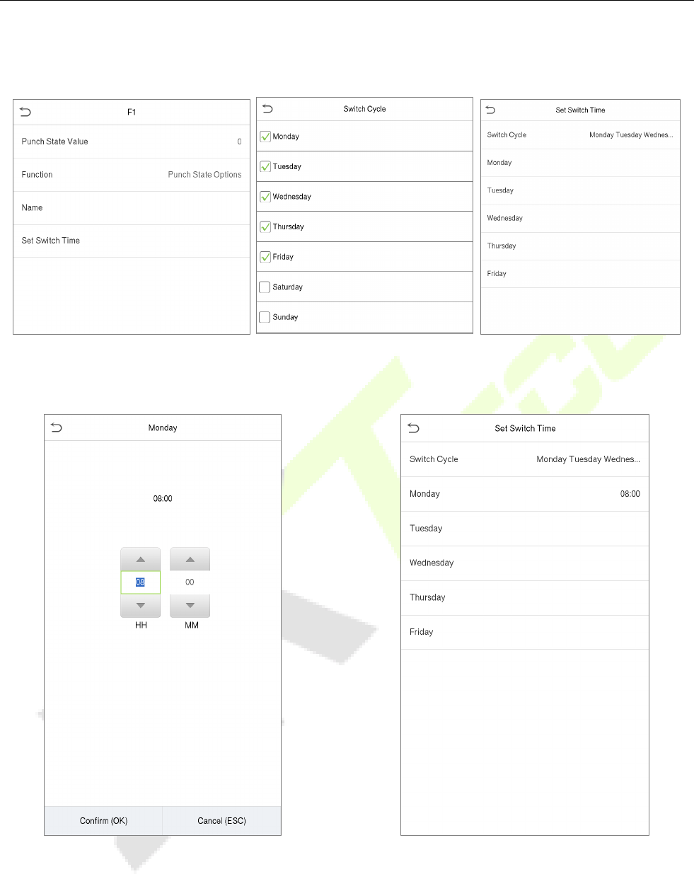 • Once the Switch cycle is selected, set the switch time for each day and tap OK to confirm, as shown